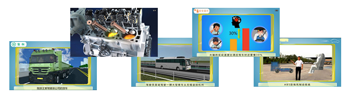 采用文字、图片、漫画、声音、示意动画、Flash动画、3D动画、视频等八大形式成功的将交通安全知识形象生动的表现出来,鲜活的画面、恰当的声效加深了学员对交通安全知识的认识、理解及记忆,丰富了教学课程的安排,为教练和学员提供生动直观、丰富多彩的教学与学习方式。是学员深深的体会到安全文明驾驶的意识,提高了驾驶人的整体素质。